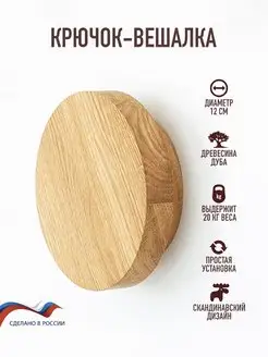 Крючок из дерева. Круг. Диаметр 12 см