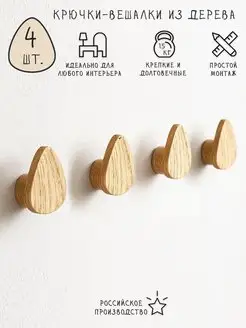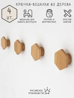 Маленькие настенные крючки из дерева на саморезах. 4 шт