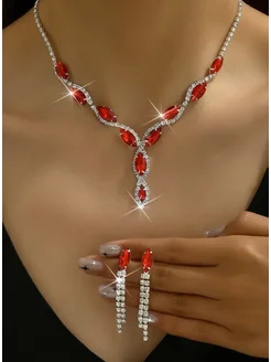 Красная вечерняя бижутерия набор свадебный колье и серьги