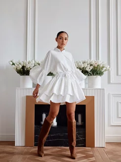 Вечернее платье туника мини с воланами