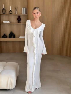 платье макси вечернее с воланами