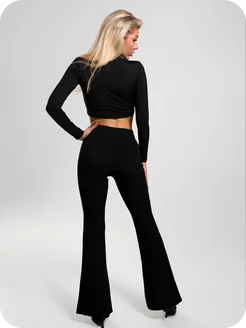 Лосины черные для фитнеса и йоги с высокой посадкой