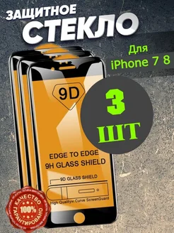 Защитное стекло на телефон iPhone 7, 8 черная рамка