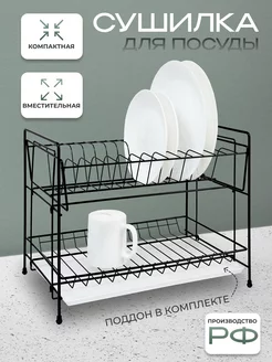 Сушилка для посуды настольная с поддоном в шкаф черная