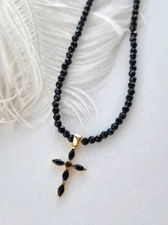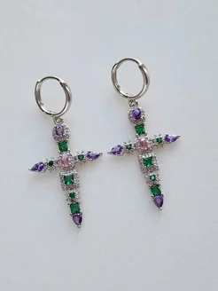 Серьги конго с фианитами и подвеской крест - бижутерия