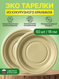 Тарелки одноразовые Эко 18 см 50 штук
