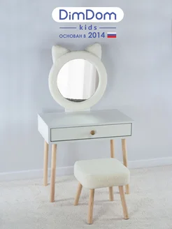 Туалетный Столик детский Котик + мягкий Пуф, белые