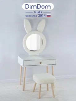 Туалетный Столик детский Зайка + мягкий Пуф, белые