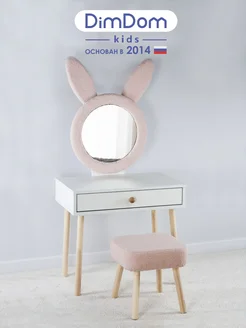 Туалетный Столик детский Зайка + мягкий Пуф, розовые