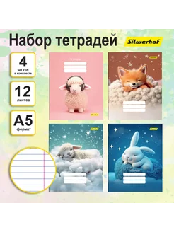 Набор 4 тетради "Мягкие игрушки" 12 листов, линейка, A5