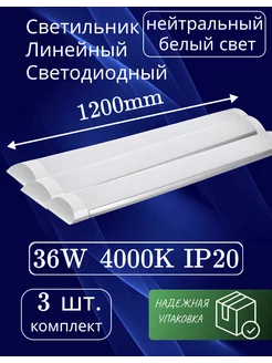 Светильник линейный светодиодный 120см 36вт 4000K (3 шт)