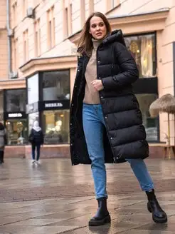 Пуховик весенний куртка длинная с капюшоном