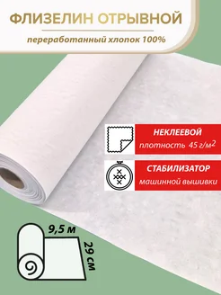 Белый флизелин неклеевой отрывной рулон 9,5 м