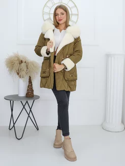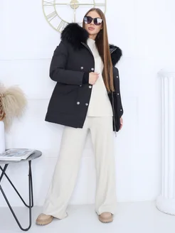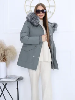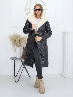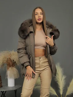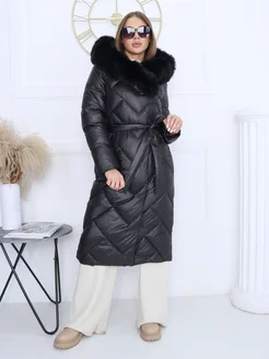Пуховик зимний длинный с капюшоном и мехом 105 см