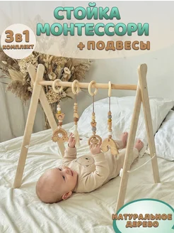 Деревянная стойка тренажер Монтессори для мобилей и подвесов