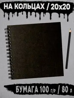 ЧЕРНЫЙ КВАДРАТНЫЙ СКЕТЧБУК НА КОЛЬЦАХ
