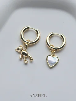 Серьги конго кольца трансформеры с сердцем бижутерия