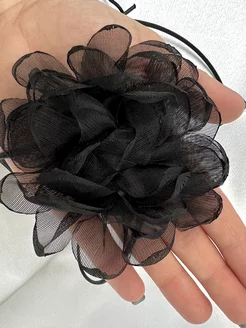Чокер цветок черный бант на шею