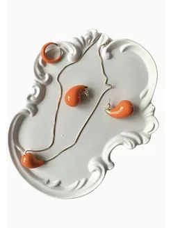 Набор капля серьги, кольцо, цепочка с подвеской