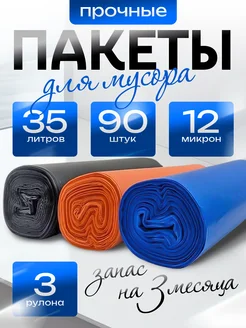 Мешки для мусора 35 л прочные цветные с завязками