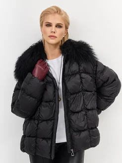 Пуховик с натуральным мехом куртка оверсайз демисезонная
