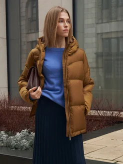 Пуховик оверсайз с капюшоном демисезонный куртка пух