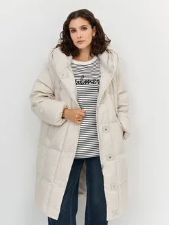 Пальто демисезонное стеганое с капюшоном куртка оверсайз