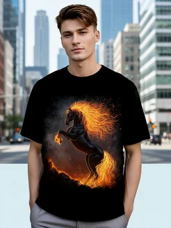 Футболка новогодняя с принтом Лошадь символ года 2026
