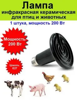 Лампа инфракрасная для обогрева цыплят кур птиц 200 Вт