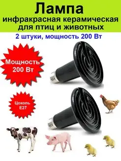 Лампа инфракрачная для обогрева кур, цыплят 200 Вт - 2 шт