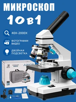 Школьный микроскоп биологический 40x-2000x с подсветкой