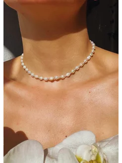 Чокер новогодний из натурального жемчуга, колье праздничное