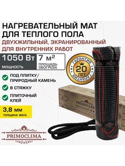 Нагревательный мат 1050Вт 7 кв.м. в плитку двужильный экран