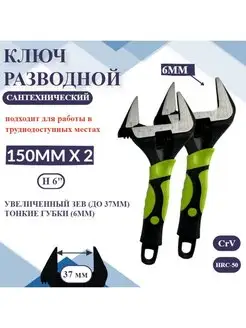Разводной ключ с тонкими губками и увеличенным зевом- 2шт