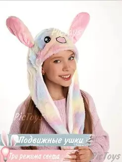 Шапка с двигающимися ушками светящаяся Радужная