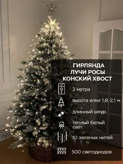 Гирлянда-мишура «Конский хвост» на макушку, тёплый свет 2 м