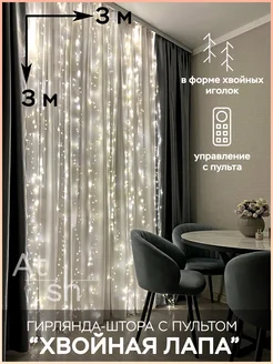 Гирлянда мишура хвойная лапа, штора 3*3 с пультом