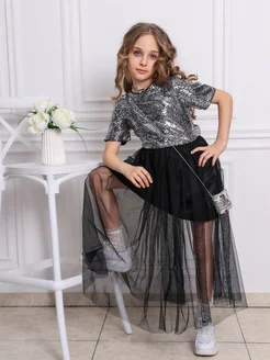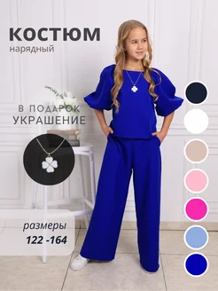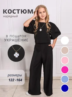 Нарядный костюм для девочки, блузка и брюки палаццо