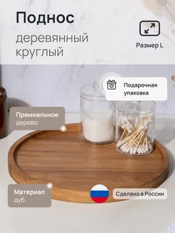Поднос деревянный круглый L дуб, 28 x 28 см
