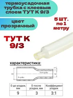 Термоусадка клеевая для проводов Тут К 9 3 мм - 5м