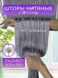 Нитяные шторы Кисея с бусами тюль на кухню стеклярус 3 м
