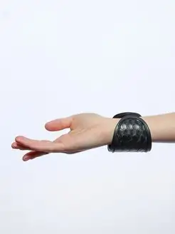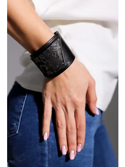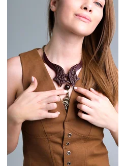 Кожаное колье с цепями и агатом, черное, в рок стиле