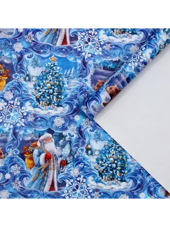 Бумага упаковочная глянцевая «Дедушка Мороз в лесу»,70×100см