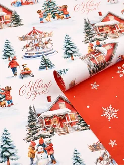 Бумага упаковочная двухсторонняя карусель из лошадей,50*70см