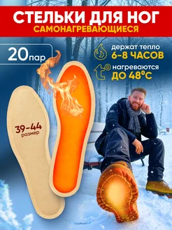 Стельки с подогревом зимние теплые 20 пар (40 штук)