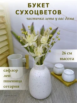 Мини букет сухоцветы пшеница лен сафлор сетария