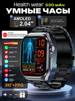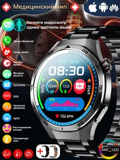 Умные круглые часы для измерения глюкозы в крови и ЭКГ+ PPG