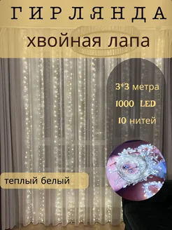 Новогодняя гирлянда штора роса хвойная лапа 3х2 187012383