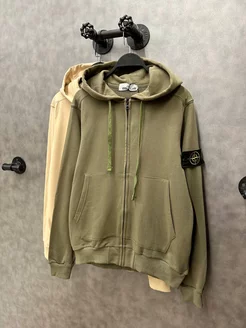 Зип худи на молнии с карманом кенгуру и капюшоном хаки