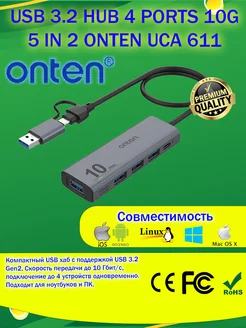 USB хаб UCA-611 4 порта, USB 3.2 Gen2 10 Гбит с